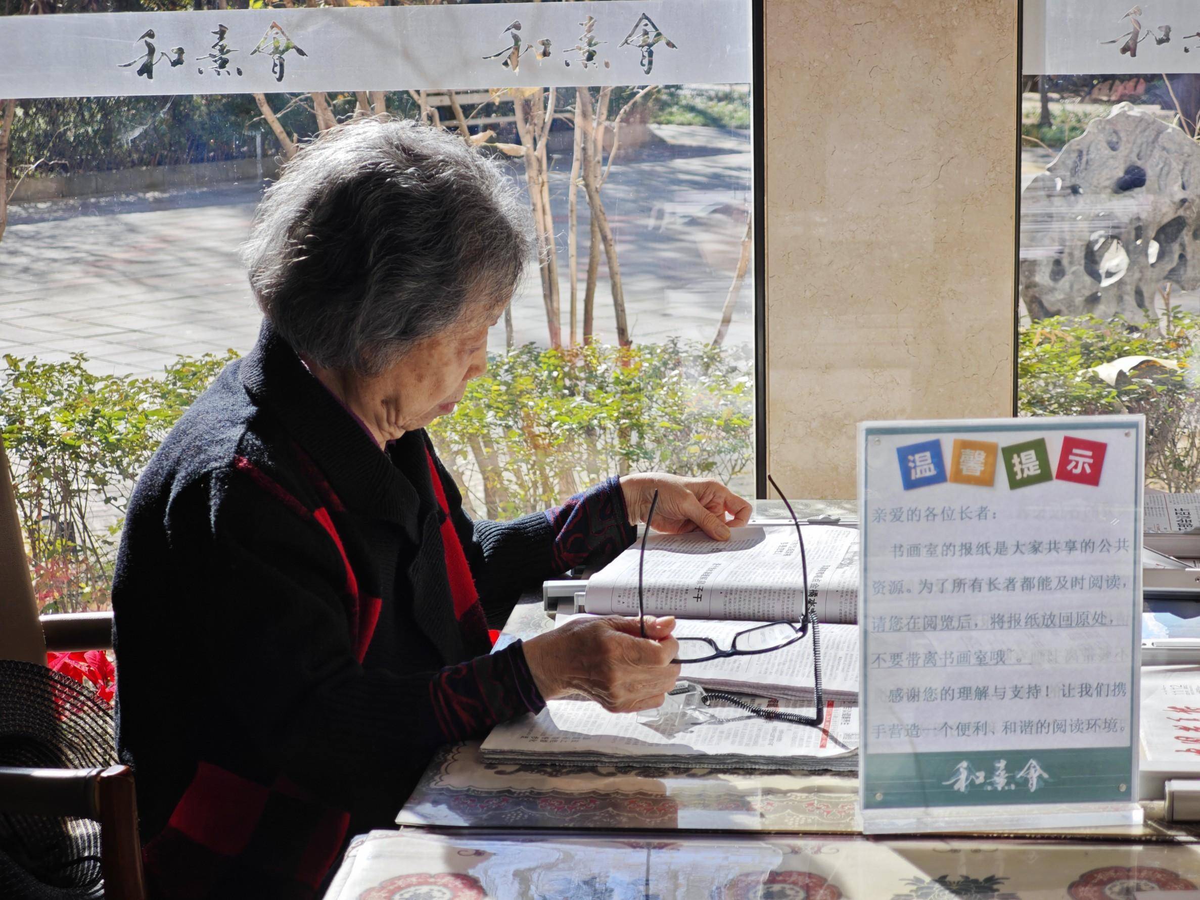 老人正在阅读报纸。人民网记者 车柯蒙摄